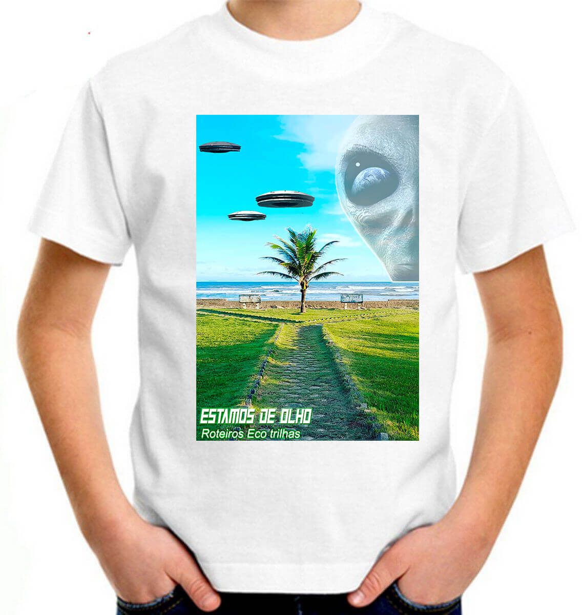 Camiseta personalizada com estampa de Invasão Alienígena em litoral de São Paulo - Peruíbe pois algumas pessoas devem saber que cidade de varginha foi local de estudo de ufologia e Peruíbe agora tamém é.